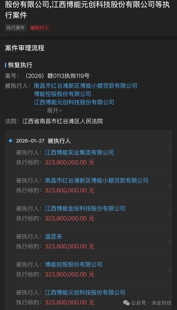 (企查查信息) 根据企查查信息,该案案号为(2026)赣0113执恢119号,单案执行标的达3.238亿元。被执行主体除博能小贷外,还包括博能控股股份有限公司、江西博能元创科技、江西博能实业集团、江西博能金投科技等关联企业,实际控制人温显来也被列为被执行人,意味着此次执行将穿透至集团与实控人层面。 博能系此前已存在被执行记录。2024年一起超1.1亿元的执行案件尚未了结,新旧案件叠加后,其核心主体待执行金额累计已达4.3亿元。 更为严峻的是,博能小贷还涉及牌照租赁违规。从其备案信息可见,该公司旗下共有35个APP及小程序,包括“集集融”“放薪借”等多款产品,业务布局复杂,为违规开展通道业务提供了条件。 牌照租赁与资质出借曾是小贷行业的灰色地带。一些不具备持牌资格的助贷、网贷平台通过租用小贷公司牌照实现APP上架、资金通道与放款运营,持牌小贷公司则收取“壳费”而不参与实际风控,此类模式一度成为行业潜规则。 目前,此类违规操作已受到监管全面遏制。2026年1月14日,江西省地方金融监督管理局印发《江西省小额贷款公司监督管理实施细则》,明确禁止小额贷款公司出租、出借经营许可证,或为无放贷资质机构提供资金通道及APP上架支持,从制度层面封堵了牌照租赁与通道业务。 博能小贷并非个例。今年以来,重庆通融小贷、哈尔滨元丰小贷等多家机构均因类似违规被查处,小贷行业牌照乱象正迎来集中整治。 除整治牌照违规外,全国小贷监管也呈全面收紧态势。2025年以来,多地相继出台文件,从利率、业务范围、资金流向、合作机构等方面加强规范。监管要求新发放贷款综合融资成本不得超过年化24%,并须在2027年底前逐步降至1年期LPR的4倍以内。同时,支付机构也被要求不得为年化收益超过24%的机构开立支付账户,实现全链条管控。 在强监管与行业出清的双重压力下,小贷行业规模持续收缩。央行数据显示,截至2025年9月末,全国小额贷款公司数量为4863家,较年初减少394家;行业贷款余额7229亿元,前三季度减少319亿元,大量违规经营、粗放扩张的机构正加速退出市场。 截至目前,多地已陆续公布小额贷款公司注销或清退信息。 1月4日,广东省地方金融管理局发布公告,同意广州民金小额贷款有限公司注销小额贷款业务资质。该公司需相应办理名称与经营范围变更或注销登记,且不得在名称及经营范围中继续使用“小额贷款”“小贷”等字样,不得再从事或变相从事相关业务。 1月5日,重庆市地方金融管理局为落实全国统一监管部署,公示了37家“失联”“空壳”地方金融组织名单。名单显示,这些机构均为小额贷款公司,包括重庆市万州区繁祥小额贷款有限公司、重庆市惠信小额贷款有限责任公司等。 北京也于近期开展了批量清退工作。1月13日,北京市地方金融管理局会同区级部门汇总形成第四批“失联”“空壳”小额贷款公司名单,涉及北京润丰元大小额贷款有限公司、北京市国旭小额贷款有限公司等机构。 此外,湖北省地方金融管理局于1月23日批复,同意注销武汉市江汉区融商小额贷款有限公司和黄陂区博锐小额贷款有限责任公司的业务资质。上述两家公司自资质注销之日起,不得再开展小额贷款相关经营活动。 |